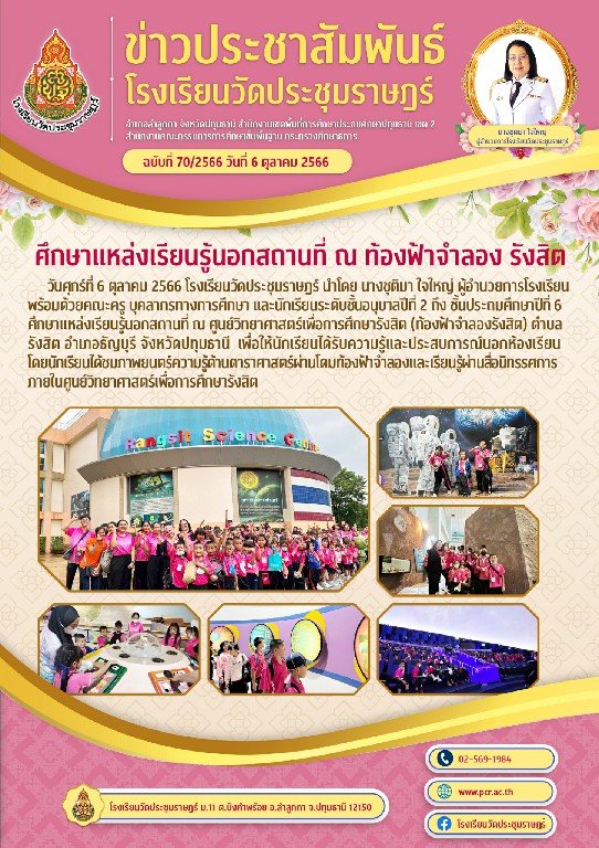 70/2566 ศึกษาแหล่งเรียนรู้นอกสถานที่ ณ ท้องฟ้าจำลอง รังสิต (6 ต.ค.66)
